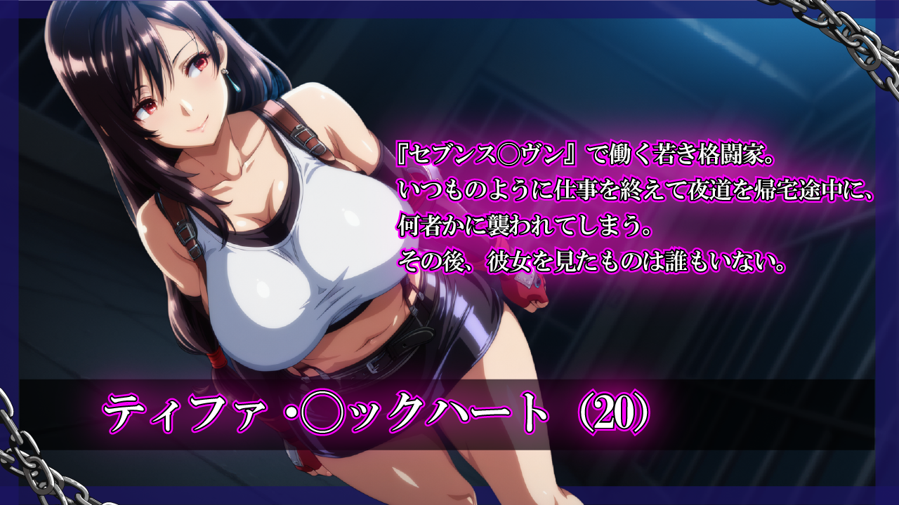 『ティファ・◯ックハート』っぽい女の子を監禁し徹底的に凌辱&孕ませるデジタルノベルADVです。