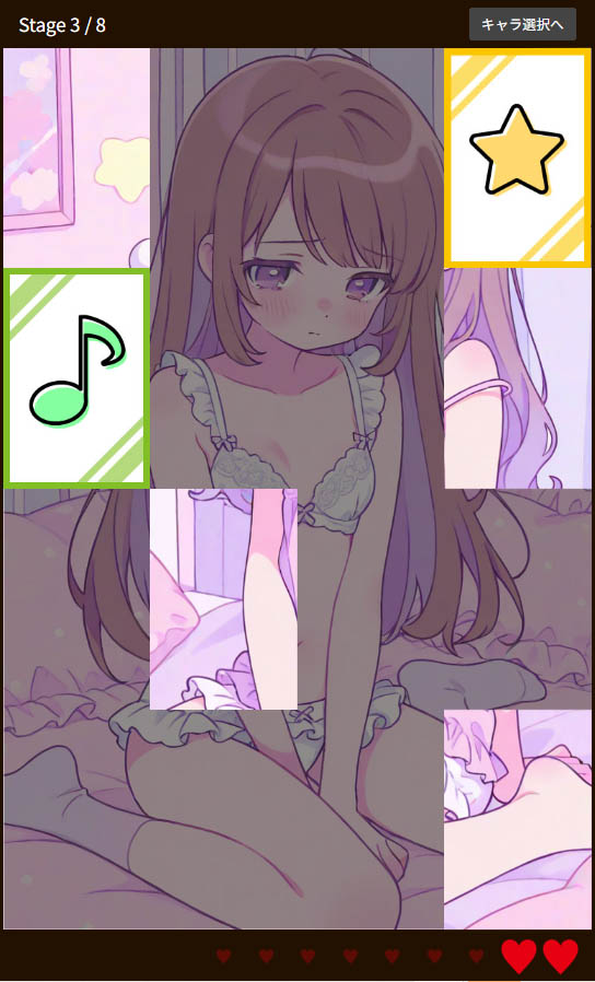 神経衰弱タイプのゲームを進めていくと、カードがペアになった部分からだんだんと次のエロイラストが見えるようになっていきます。