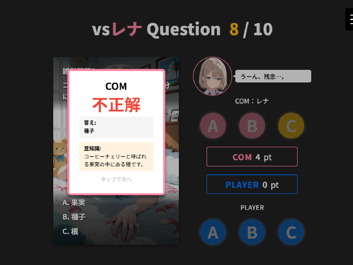 好評をいただいている『AIガールズシリーズ』の第3弾は、早押し3択クイズです。