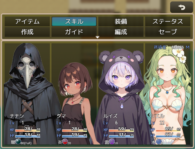 できれば、スキルも表示したかったのですが、スペースの問題と表示を切り変えるにしても
