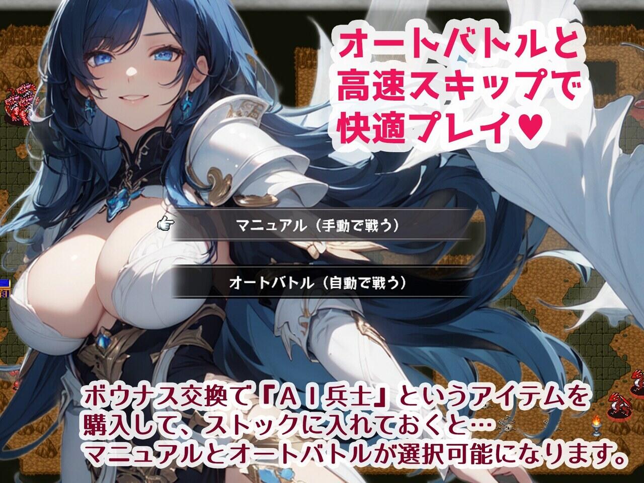 淫紋で強化した巨乳巨尻むちむち女勇者部隊を動かして、邪悪な魔道軍団を撃破していくSRPGです。英雄将軍の娘ラルクシア、ギャル騎士エリシーナ、多才な錬金術師クレアス、ぼっちハイエルフ・ハルウシャ、慈悲なきシスター・サティラ、精霊族の超戦士オレント、魔道を極めし大魔王オーメガ……彼女たちを待ち受ける運命とは?