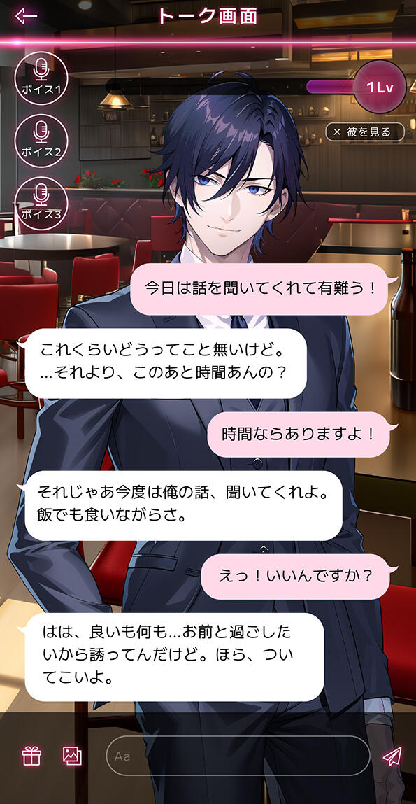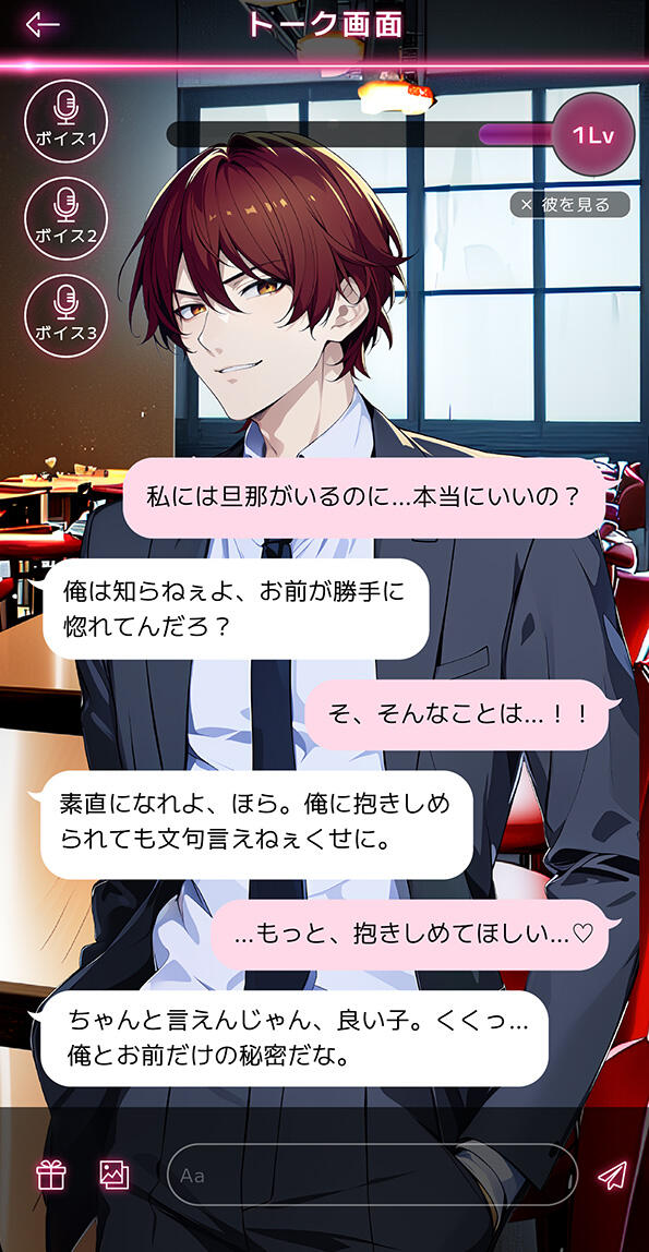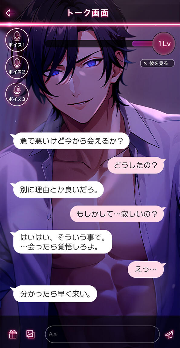 2次元男性キャラたちと甘い言葉をかけあう大人向け恋愛チャットゲーム