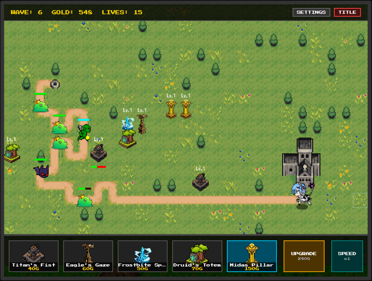 ドット絵の古式ゆかしいタワーディフェンスゲームです。