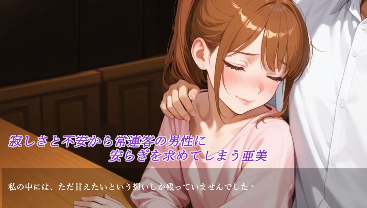 寂しさから店の常連客(あなた)に心を寄せてしまった亜美は、いつしかあなたが代えがたい存在になっていることに気づきます。