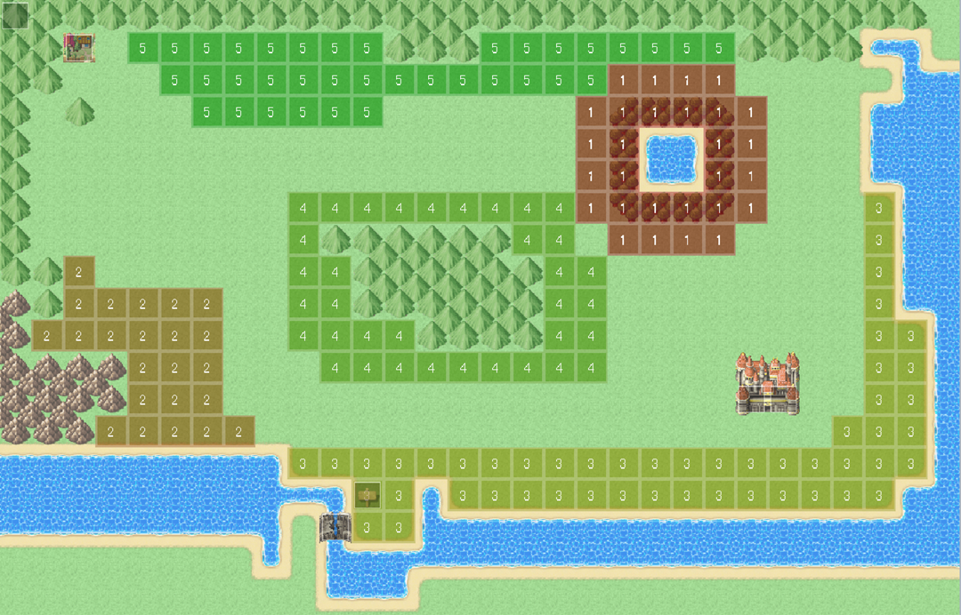 自宅の左側のベッド(緑の四角)で(決定ボタンを押す)寝ることで夜になります。